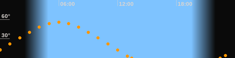 Höchster Stand (Kulmination)06:00 Uhr (h = 55.6°)