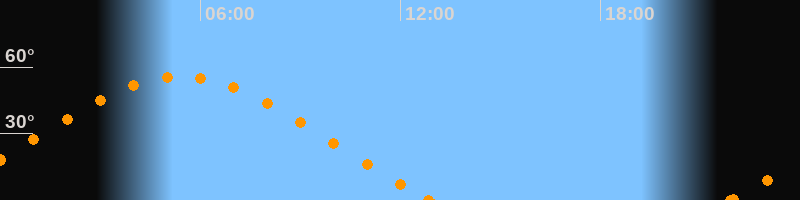Höchster Stand (Kulmination)05:24 Uhr (h = 55.6°)