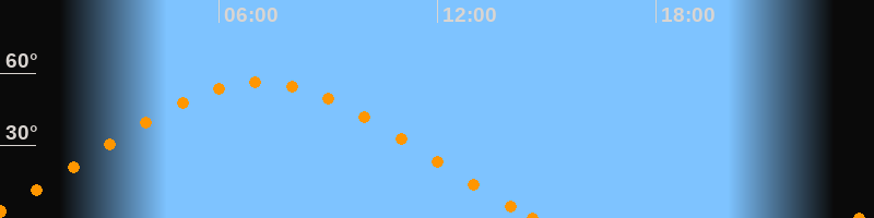 Aufgang23:34 Uhr im Nordosten (αAz = 61.9°)