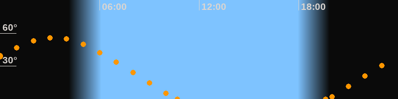 Aufgang19:38 Uhr im Nordosten (αAz = 62.1°)