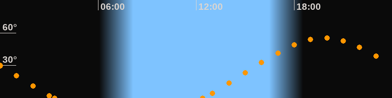 Höchster Stand (Kulmination)19:49 Uhr (h = 55.5°)