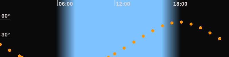 Höchster Stand (Kulmination)18:46 Uhr (h = 55.4°)