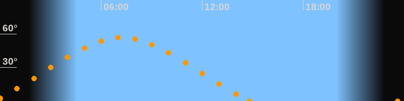 Höchster Stand (Kulmination)07:14 Uhr (h = 56.7°)