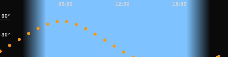 Höchster Stand (Kulmination)06:27 Uhr (h = 56.7°)