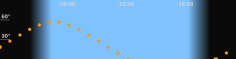 Höchster Stand (Kulmination)05:28 Uhr (h = 56.7°)