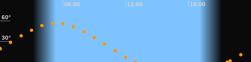 Höchster Stand (Kulmination)05:21 Uhr (h = 56.7°)