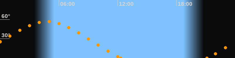 Höchster Stand (Kulmination)04:45 Uhr (h = 56.7°)