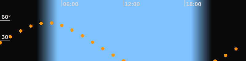 Höchster Stand (Kulmination)04:33 Uhr (h = 56.7°)