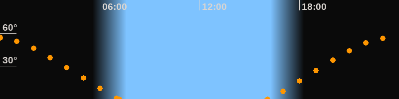 Höchster Stand (Kulmination)23:36 Uhr (h = 56.3°)