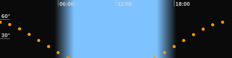 Höchster Stand (Kulmination)23:28 Uhr (h = 56.3°)