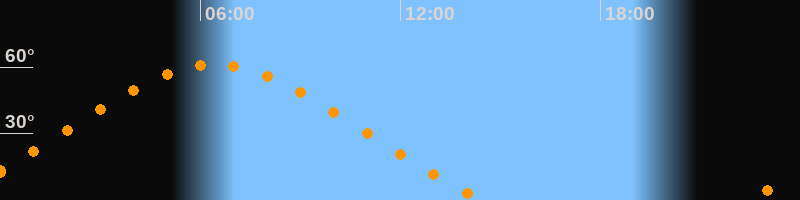 Höchster Stand (Kulmination)06:25 Uhr (h = 61,3°)