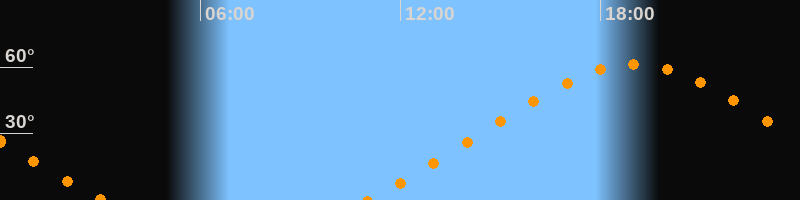 Höchster Stand (Kulmination)19:00 Uhr (h = 61,3°)