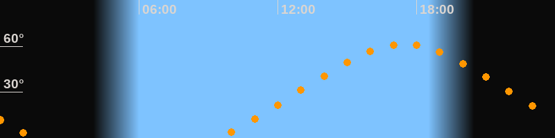Höchster Stand (Kulmination)17:27 Uhr (h = 61,3°)