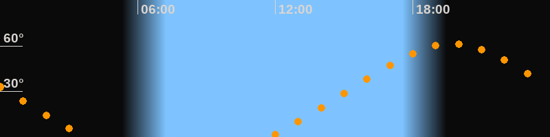 Höchster Stand (Kulmination)19:41 Uhr (h = 61,3°)