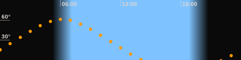 Höchster Stand (Kulmination)06:09 Uhr (h = 61,3°)