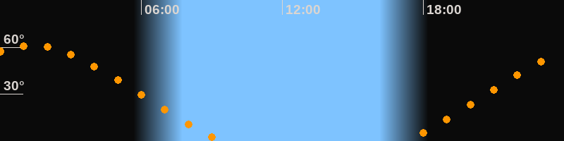 Höchster Stand (Kulmination)01:21 Uhr (h = 61,3°)