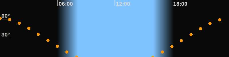 Höchster Stand (Kulmination)23:59 Uhr (h = 61,3°)
