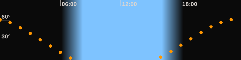 Höchster Stand (Kulmination)23:23 Uhr (h = 61,3°)