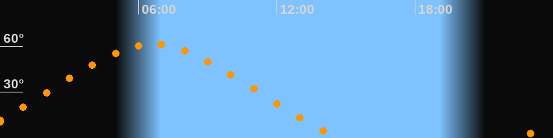 Höchster Stand (Kulmination)06:38 Uhr (h = 61,3°)