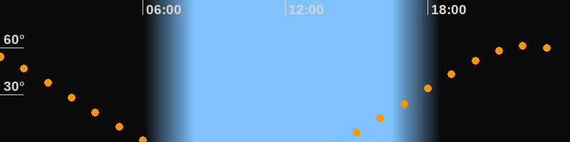 Höchster Stand (Kulmination)22:10 Uhr (h = 61,3°)