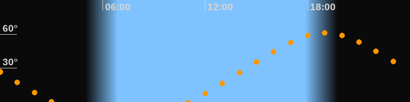 Höchster Stand (Kulmination)19:01 Uhr (h = 61,3°)
