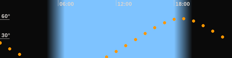 Höchster Stand (Kulmination)18:41 Uhr (h = 61,3°)