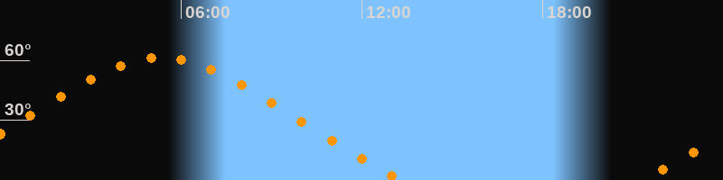Höchster Stand (Kulmination)05:20 Uhr (h = 61,3°)