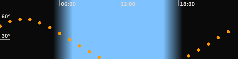Höchster Stand (Kulmination)02:22 Uhr (h = 61,3°)