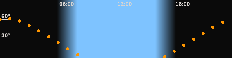 Höchster Stand (Kulmination)00:40 Uhr (h = 61,3°)
