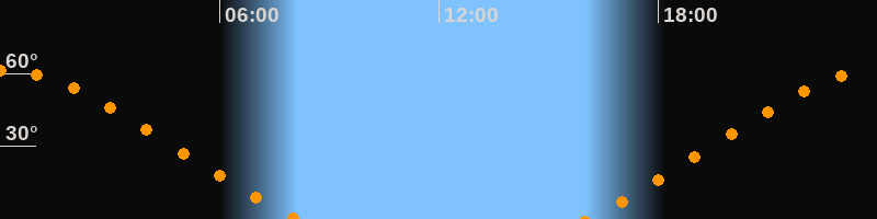 Höchster Stand (Kulmination)00:03 Uhr (h = 61,3°)