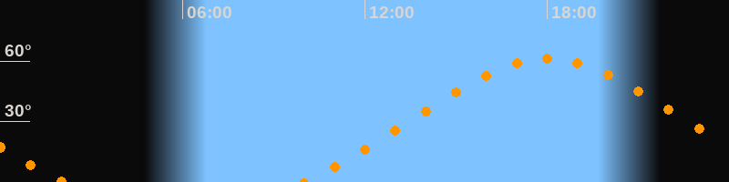 Höchster Stand (Kulmination)18:02 Uhr (h = 61,3°)