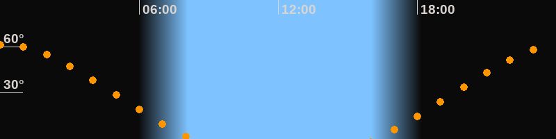 Höchster Stand (Kulmination)00:11 Uhr (h = 61,3°)