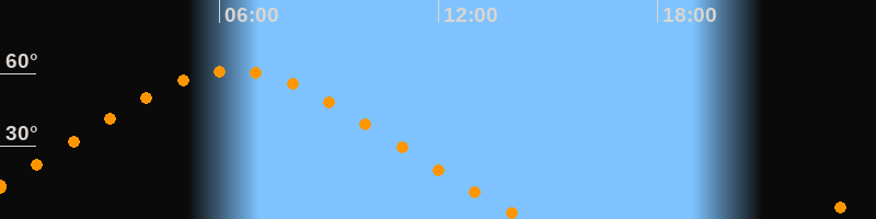 Höchster Stand (Kulmination)06:23 Uhr (h = 61,3°)
