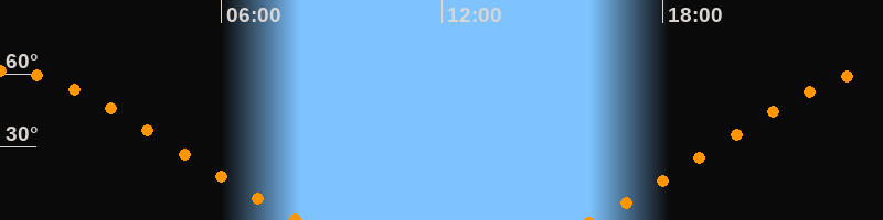 Höchster Stand (Kulmination)00:02 Uhr (h = 61,3°)