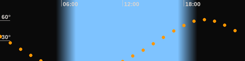Höchster Stand (Kulmination)20:01 Uhr (h = 61,3°)