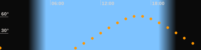 Höchster Stand (Kulmination)16:30 Uhr (h = 61,3°)