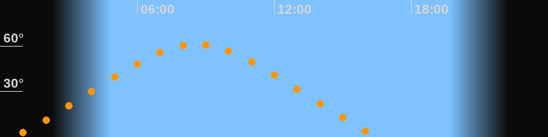 Höchster Stand (Kulmination)08:34 Uhr (h = 61,3°)