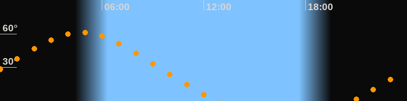 Höchster Stand (Kulmination)04:46 Uhr (h = 61,3°)