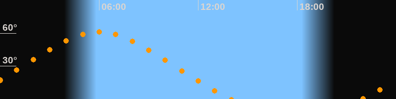 Höchster Stand (Kulmination)05:58 Uhr (h = 61,3°)