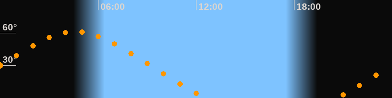 Höchster Stand (Kulmination)04:35 Uhr (h = 61,3°)