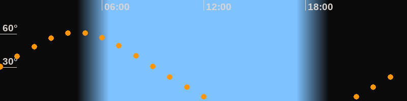 Höchster Stand (Kulmination)04:32 Uhr (h = 61,3°)