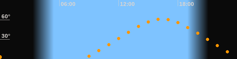 Höchster Stand (Kulmination)16:24 Uhr (h = 61,3°)