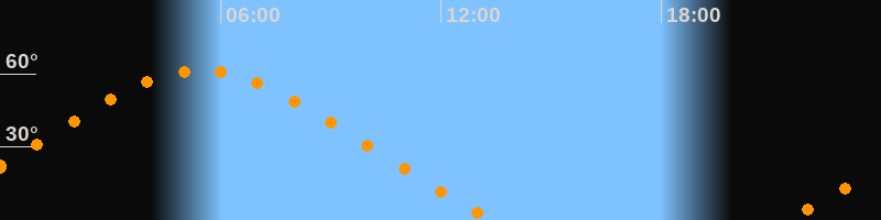 Höchster Stand (Kulmination)05:28 Uhr (h = 61,3°)