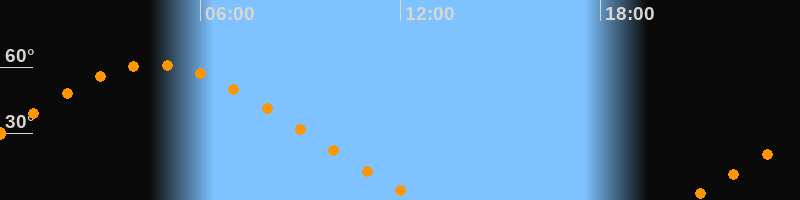 Höchster Stand (Kulmination)04:36 Uhr (h = 61,3°)