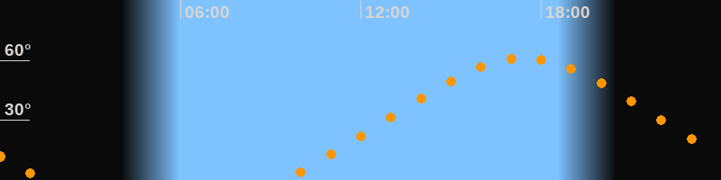Höchster Stand (Kulmination)17:25 Uhr (h = 61,3°)
