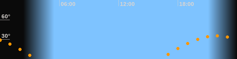 | Aufgang | 16:10 Uhr im Osten (αAz = 95,5°) |