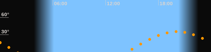 | Aufgang | 14:23 Uhr im Osten (αAz = 95,5°) |