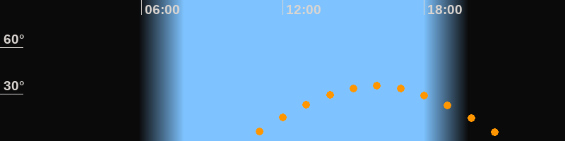 | Aufgang | 10:14 Uhr im Osten (αAz = 95,5°) |