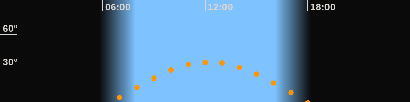 | Aufgang | 06:30 Uhr im Osten (αAz = 95,5°) |