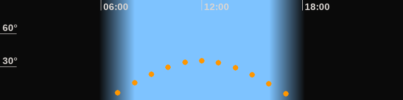 | Höchster Stand (Kulmination) | 11:57 Uhr (h = 35,4°) |